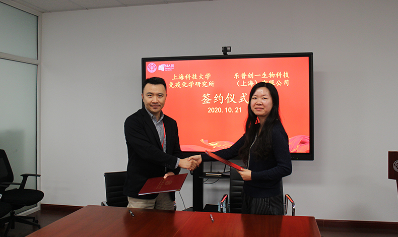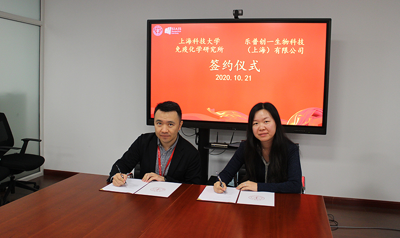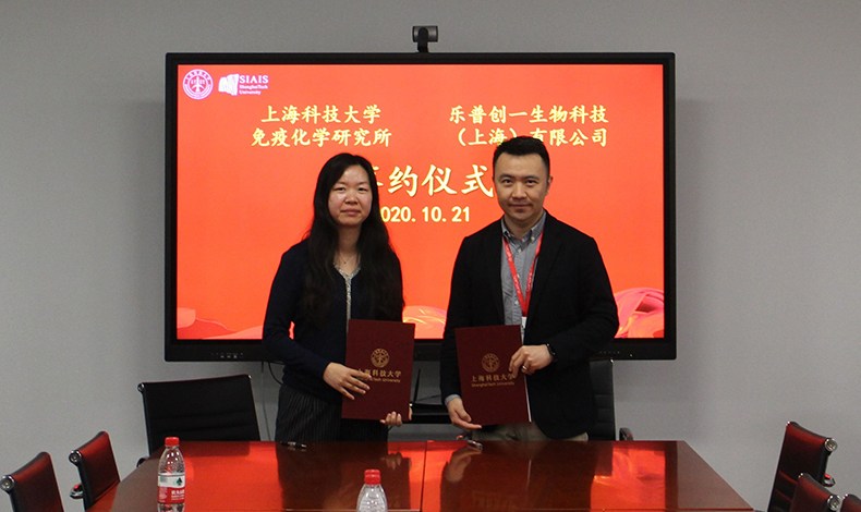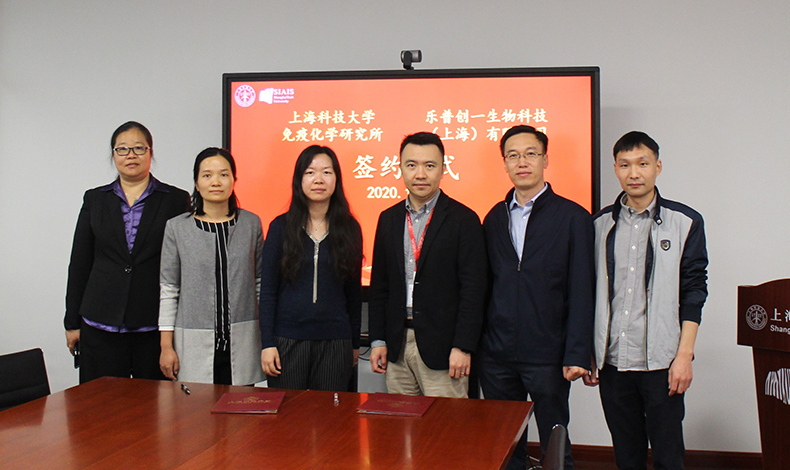 2020年10月21日,上??萍即髮W(xué)免疫化學(xué)研究所與樂普創(chuàng)一生物科技(上海)有限公司舉行科研合作簽約儀式。上??萍即髮W(xué)免疫化學(xué)研究所助理所長、高通量篩選平臺主任雷穎,上??萍即髮W(xué)免疫化學(xué)研究所高通量篩選平臺工程師孔娟,上海科技大學(xué)免疫化學(xué)研究所高通量篩選平臺工程師姜連連,樂普創(chuàng)一生物科技(上海)有限公司總經(jīng)理方磊,樂普創(chuàng)一生物科技(上海)有限公司抗體平臺主任曲志虎,樂普創(chuàng)一生物科技(上海)有限公司科學(xué)家王旭輝等出席簽約儀式。